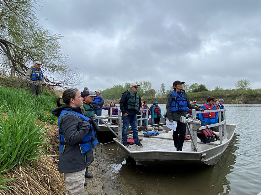 | Boat for field triop on the Missouri River | Field trip along the Missouri River | ||