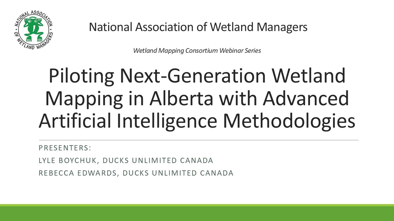This presentation provided an overview of a collaborative project, delivered by the Government of Alberta, Ducks Unlimited Canada, and the Alberta Biodiversity Monitoring Institute, aimed at piloting and refining state-of-the-art wetland mapping methodologies specific to Alberta’s boreal, parkland, and grassland region. Wetlands across Alberta, which act as nature’s water filters, biodiversity hot spots and carbon storehouses, are facing significant changes due to climate change and human disturbance, therefore, spatial inventorying of wetlands is critical and required to support legislation and policy development surrounding the management and monitoring of these sensitive ecosystems.